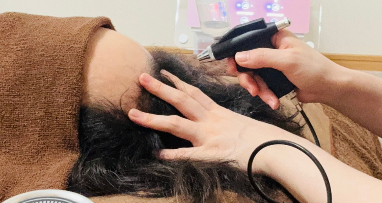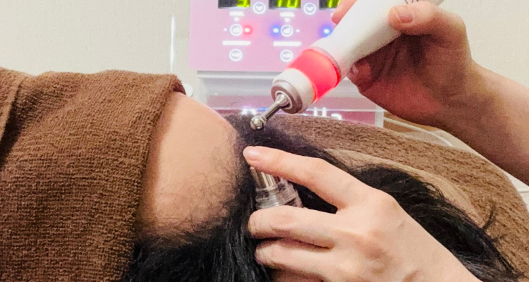 マイクロスコープで毛根や密度診断を行い、プラズマにて髪の成長因子を含んだエッセンスを頭皮に入れ込んでいきます。5~7日後に新毛確認をします。
